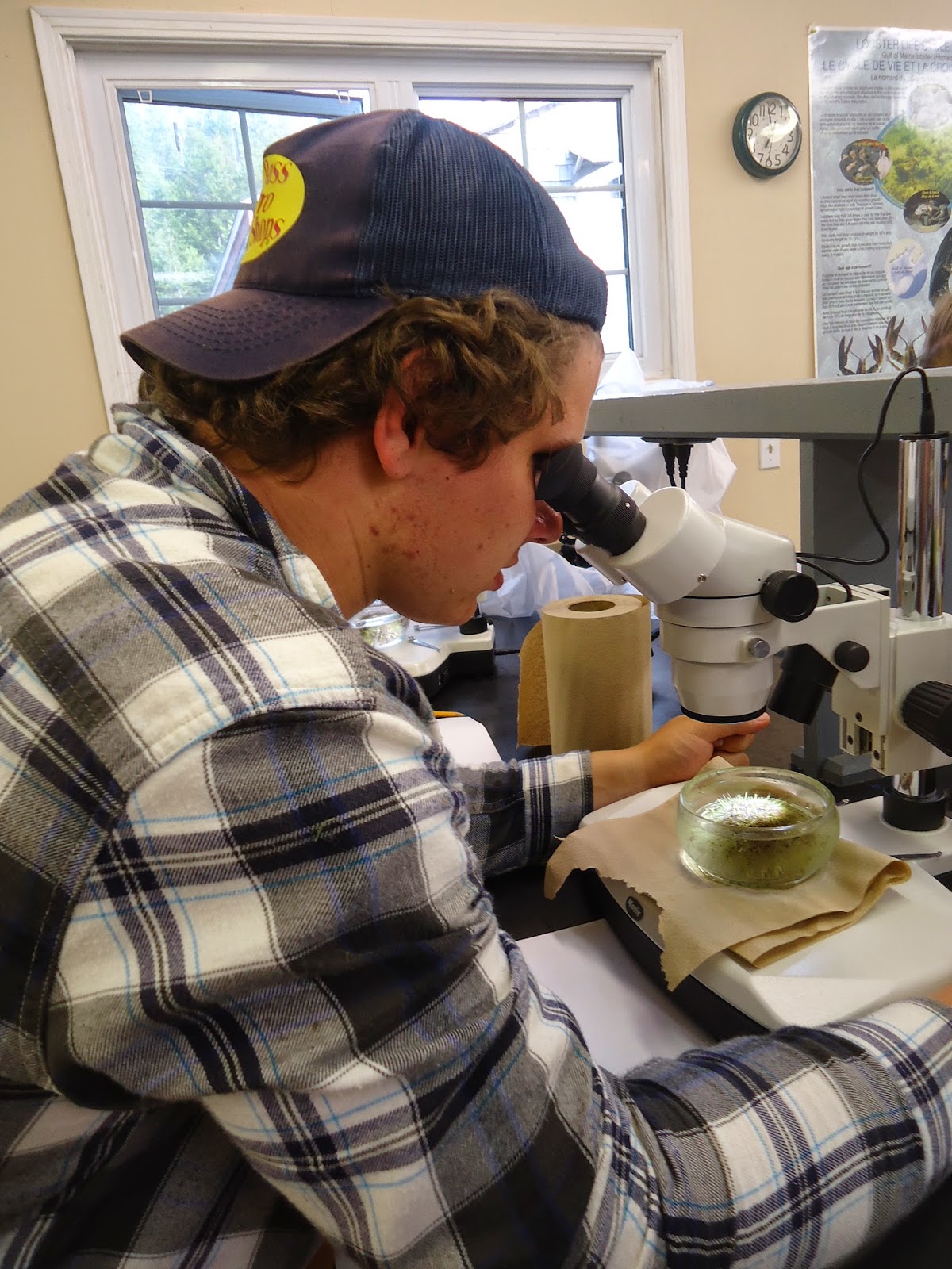Viewing the plankton using microscopes.